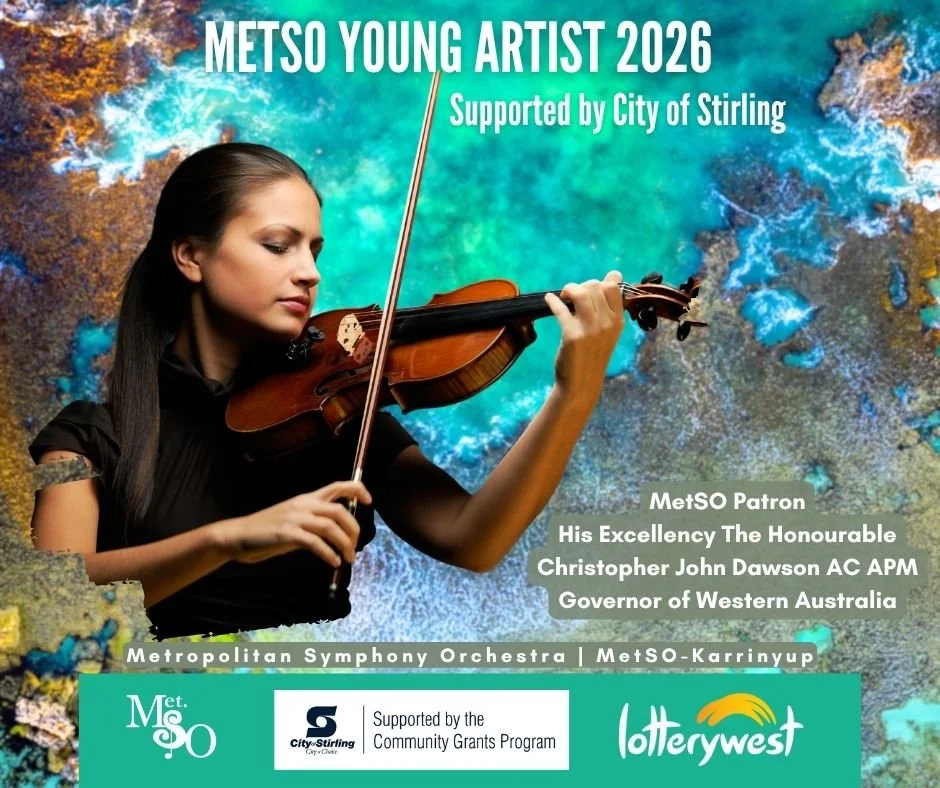 The Metropolitan Symphony Orchestra (MetSO) invites young West Australian instrumentalists, vocalists and composers to audition for the opportunity to perform as soloists, or have their work performed during the MetSO 2026 Concerts Series.