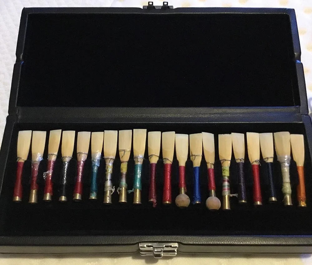 20 of my baroque oboe reeds -which are mostly long scrape - again in order of best to worst. The other side of the reed case has another 20 reeds!