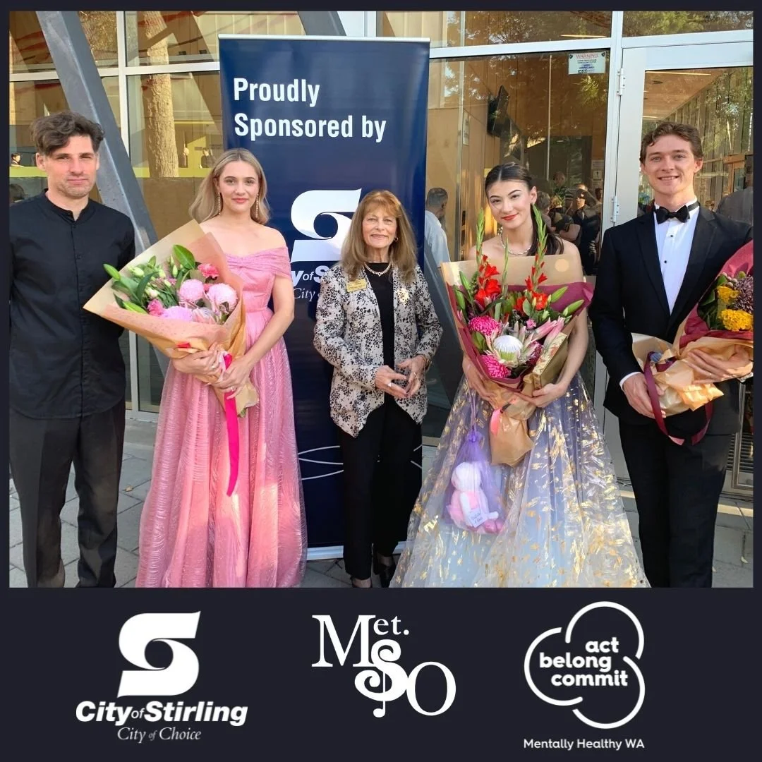 LtoR MetSO Artistic Director Burhan Güner, Jesse Chester Browne, City of Stirling Deputy-Mayor Stephanie Proud JP, Tina Algeri & Keaton Staszewski-Hose